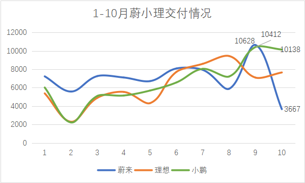 7-10月蔚来交付量分别为7931、5880、10628、3667辆,起伏较大。其中9月虽然交付破万,但仔细观察大概率是因为前一月订单积压导致的短时间上涨。