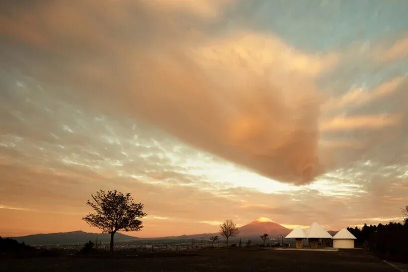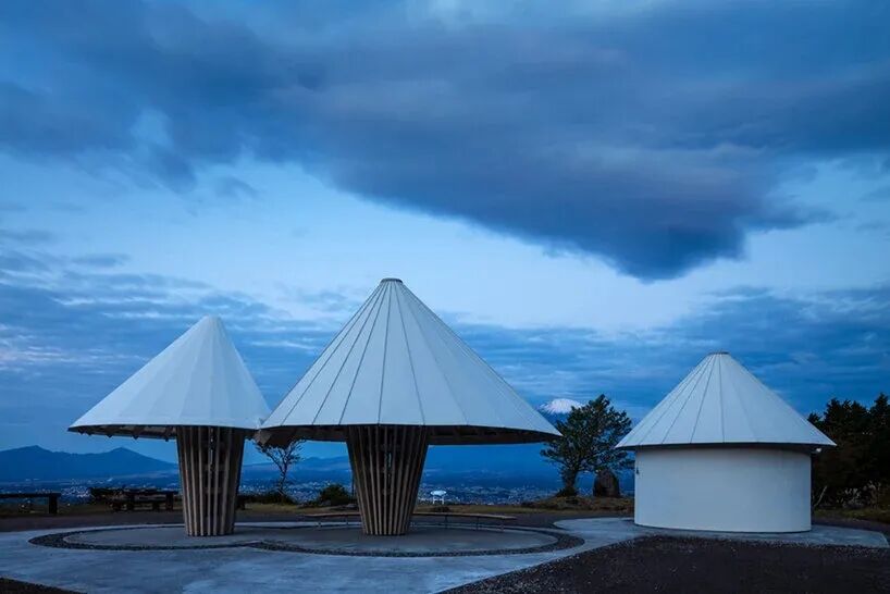隈研吾以富士山为背景的“誓言山公园”厕所反映了富士山的标志性形式,提供了对景观影响最小的遮阳和服务。