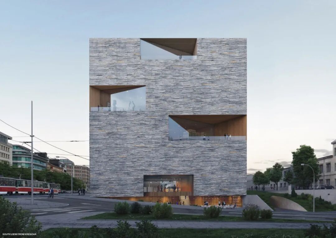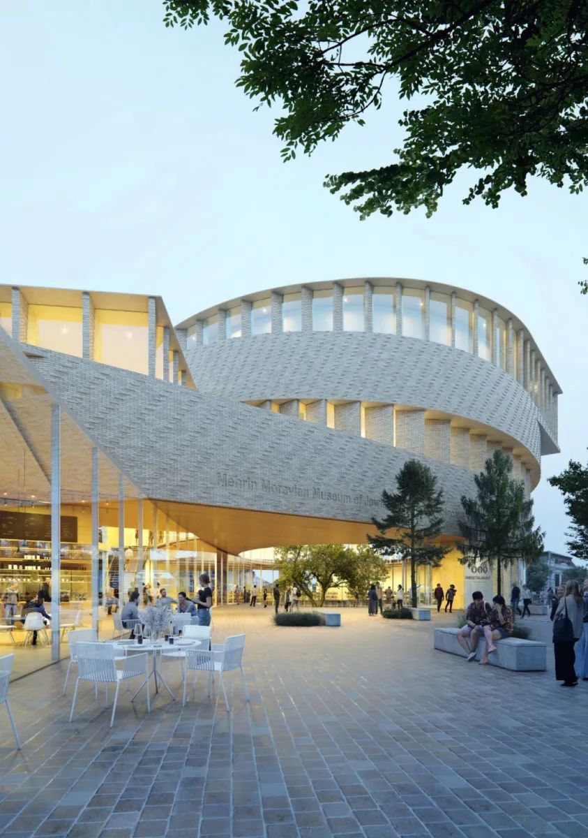 摩拉维亚犹太博物馆,位于捷克第二大城市布尔诺市,隈研吾事务所设计的方案是一座开放且温和的丝带状建筑,建筑流线从地面开始,到顶层结束,视野开阔,并在内里围合出了一个庭院。这座博物馆是犹太文化影响下的作品,旨在向公众展示犹太人在摩拉维亚存在的的历史和文化。