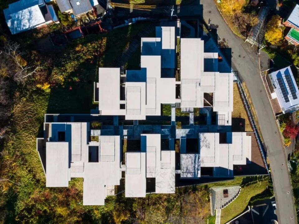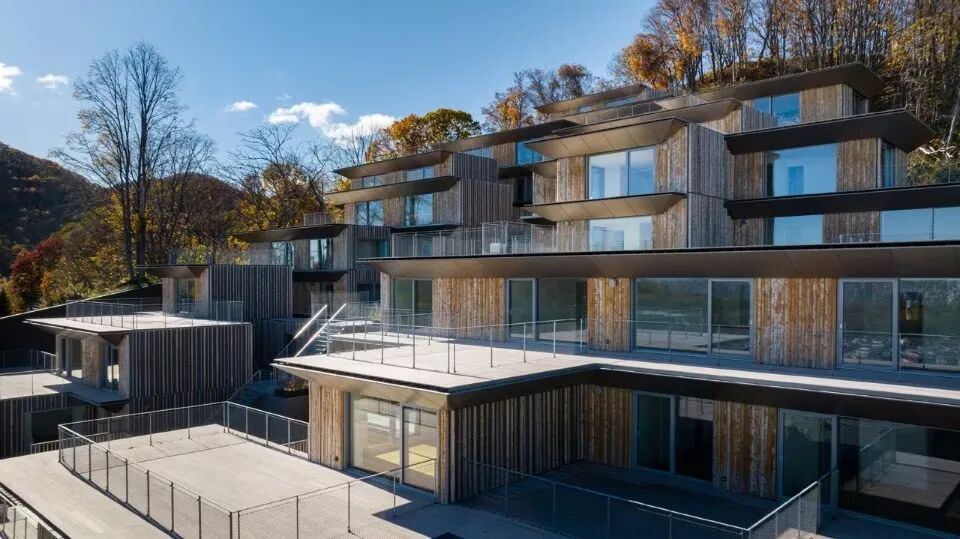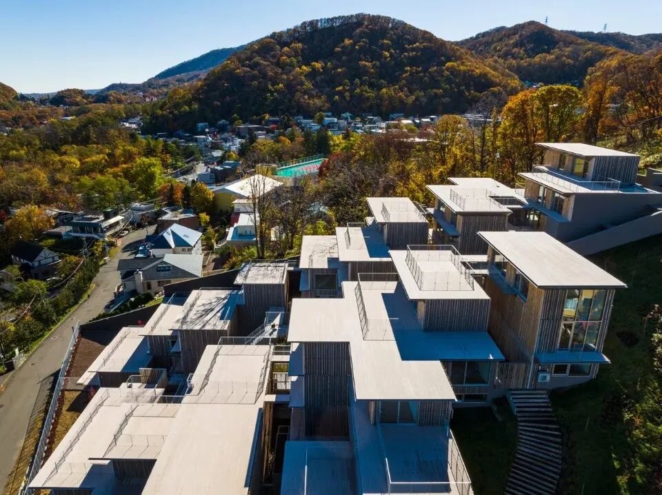 隈研吾建筑事务所(KKAA)在日本北海道一座俯瞰札幌市的山上设计了一个多单元住宅项目。