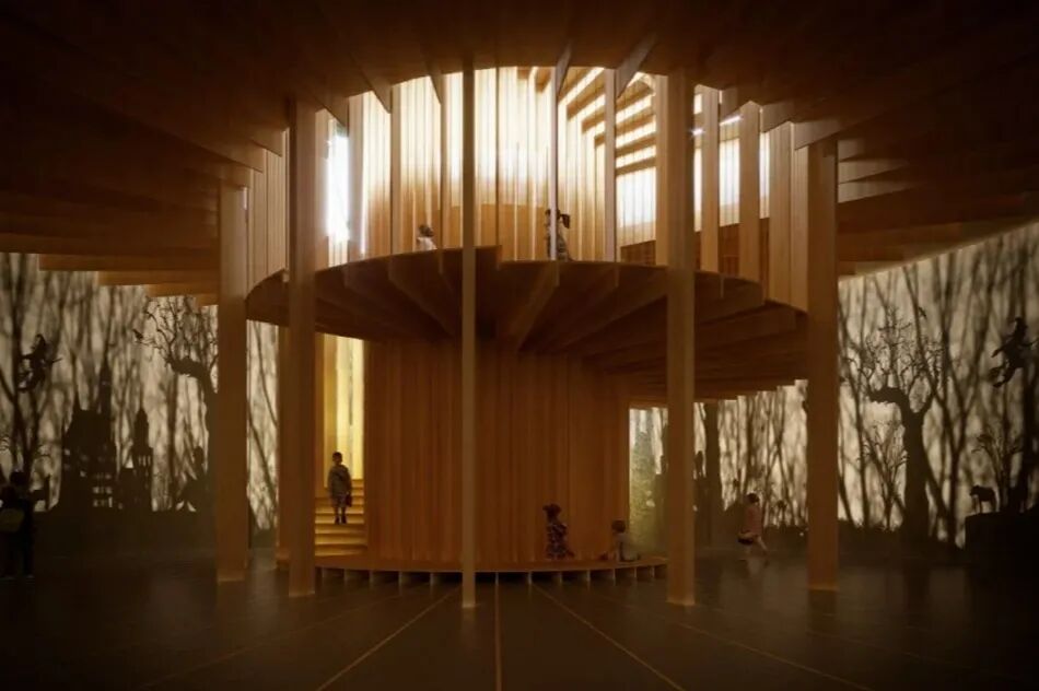 因此隈研吾致力于将安徒生的文学宇宙具象化,通过建筑、声音、灯光和大量图像,打造出一个生动童趣的艺术空间。