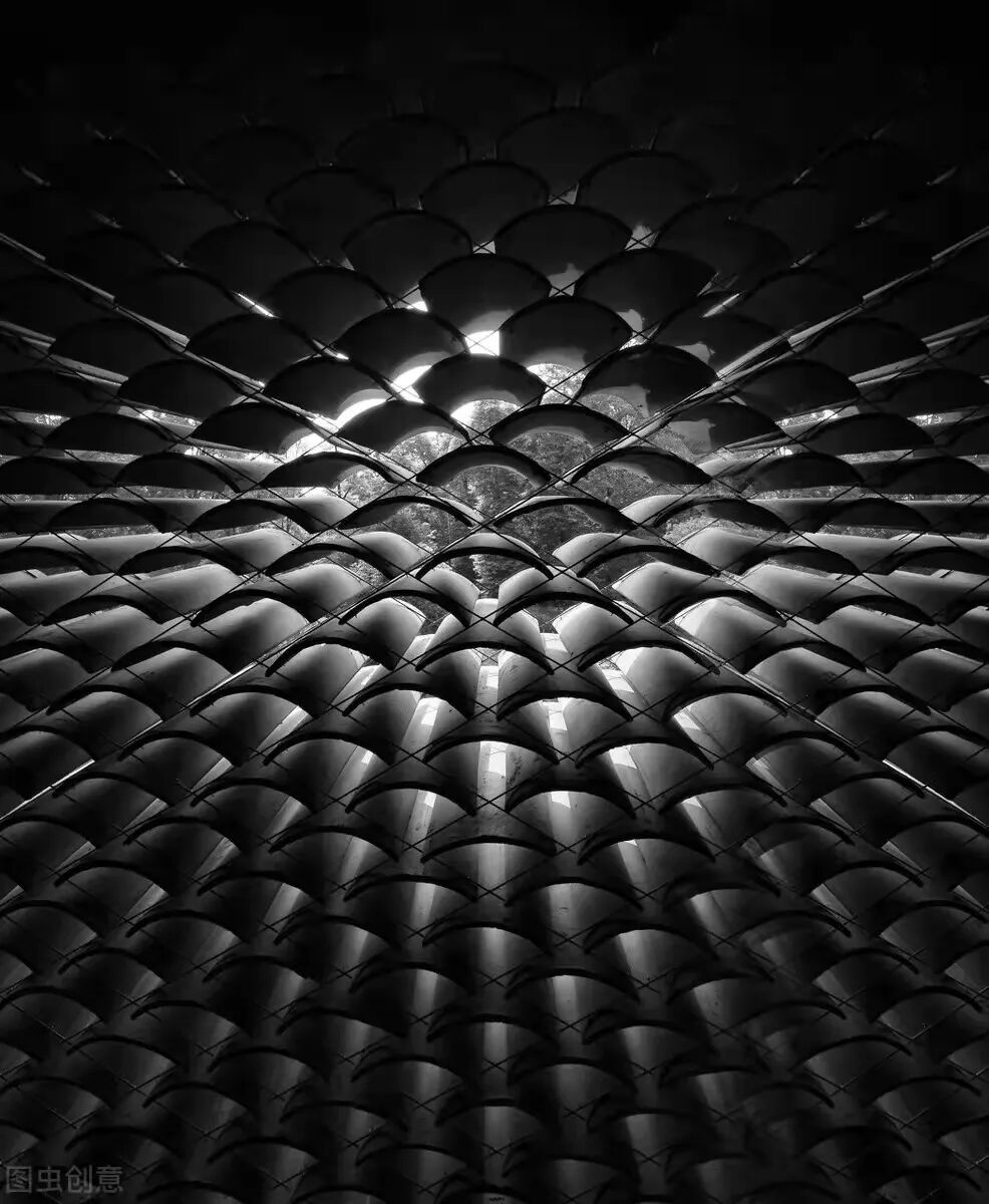 采用镜面材料无疑是一种最直接地将建筑消隐于环境中的设计手法。当把镜面运用在建筑的外表皮时,它能够反射出周围环境、自然光线与气候的变化,在视觉上将建筑与环境融为一体,为建筑赋予了动态的表达与梦幻般的光影效果。