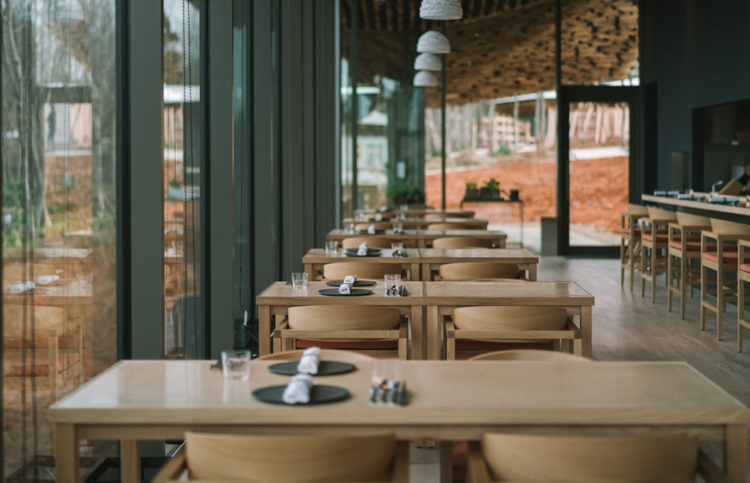 Snow Peak 餐厅的设计同样将自然与人,人与人联系在一起。开放式厨房和操作区域的设计,可以尽情观看到厨房内的场景,菜单将在地食材引入,推广在地饮食文化。
