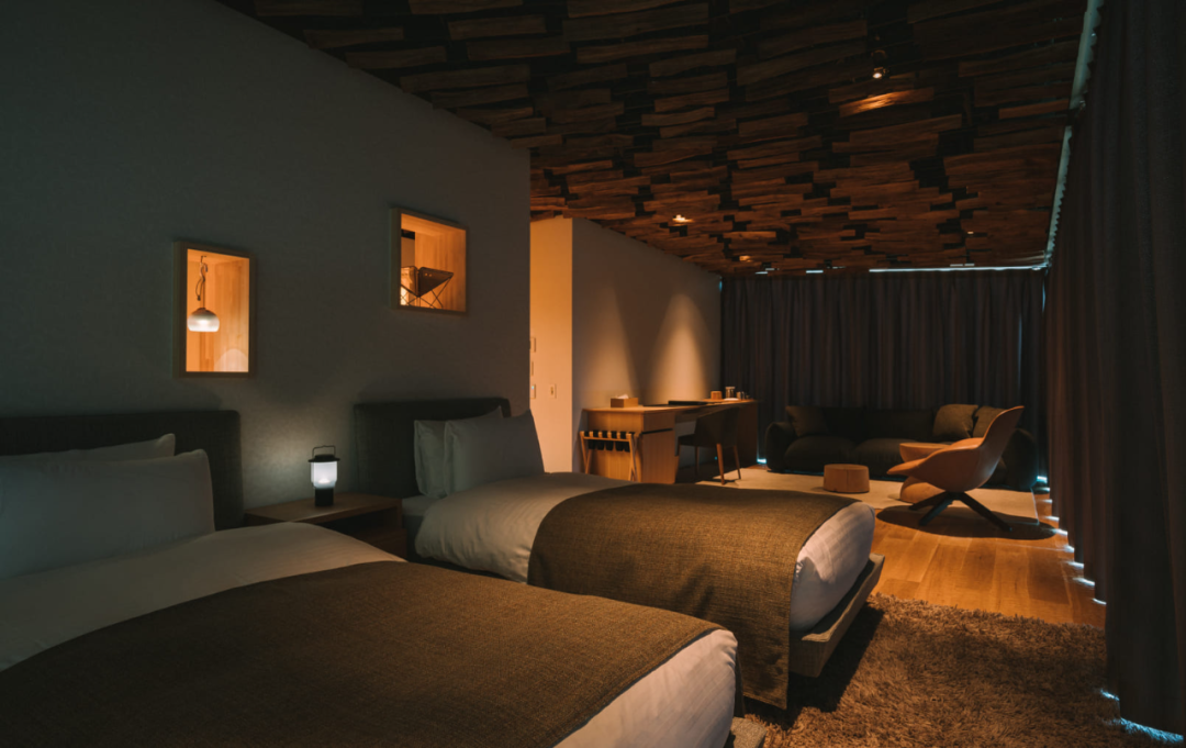 除了休闲娱乐 Field Suite Spa 的住宿场所也极具个性,分别有三种形式、别墅套房、小型套房、和独立小屋。