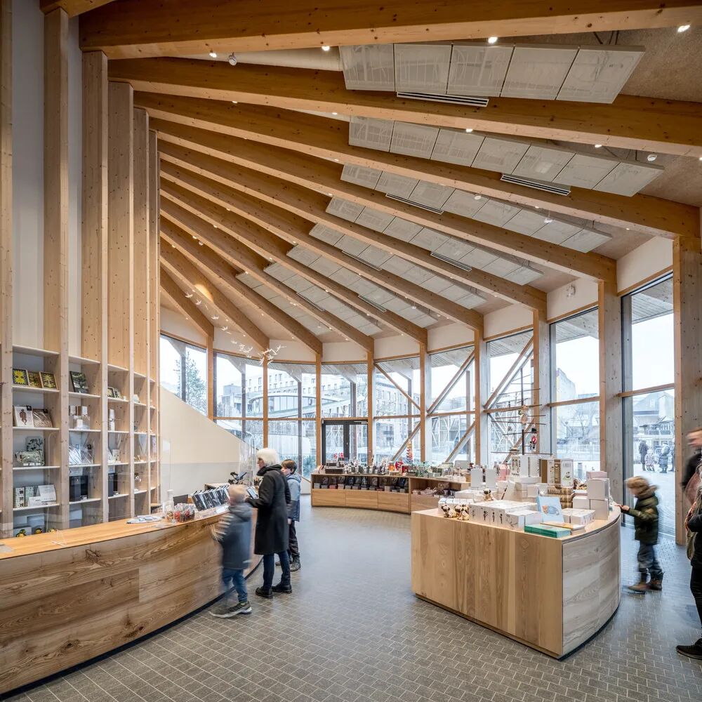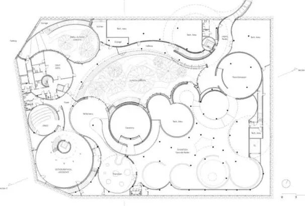 展览空间位于地下。迷人的地上花园由曲线树篱组成,与地下的展览空间相呼应。
