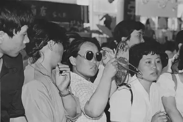 1981年,北京,某产品展销会,消费者买太阳镜。