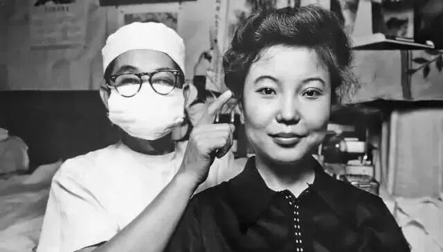 1980年,傅弄玉(音)医生和他的顾客——刚做过开双眼皮手术的女士。为了整容者可以独自骑自行车回家,一次只开一个眼睛。