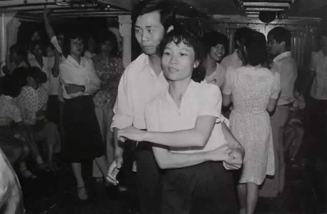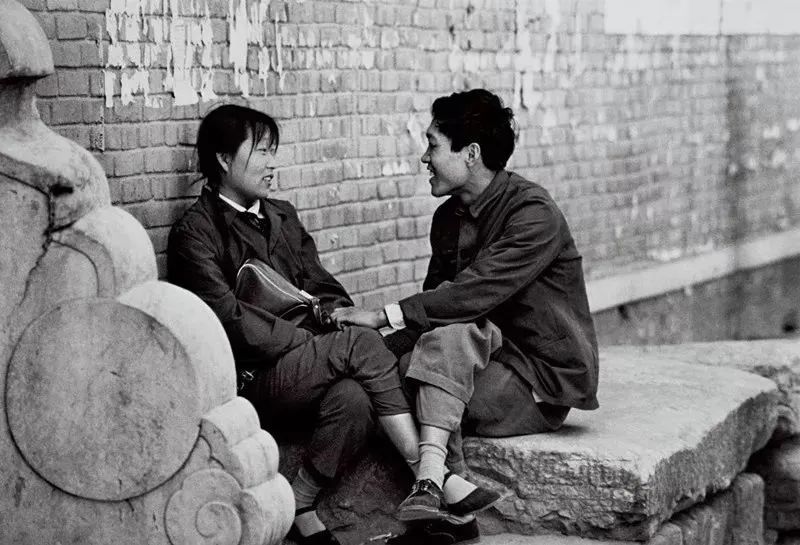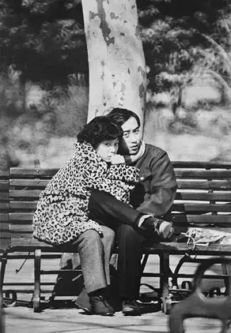 1980年代初,上海公园里谈恋爱的男女怯生生地亲热。