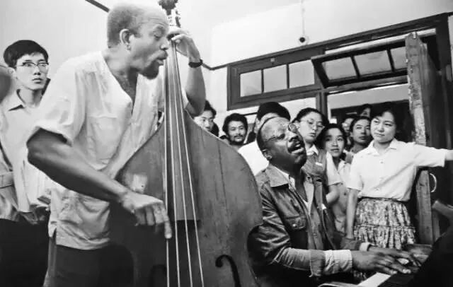 1981年,美国摇滚音乐家威利·鲁弗(左)与德怀特·米切尔(右)在中央音乐学院宿舍举办了一场即兴演唱会。鲁弗是耶鲁大学的音乐教授,米切尔则是来自纽约的专业钢琴家。
