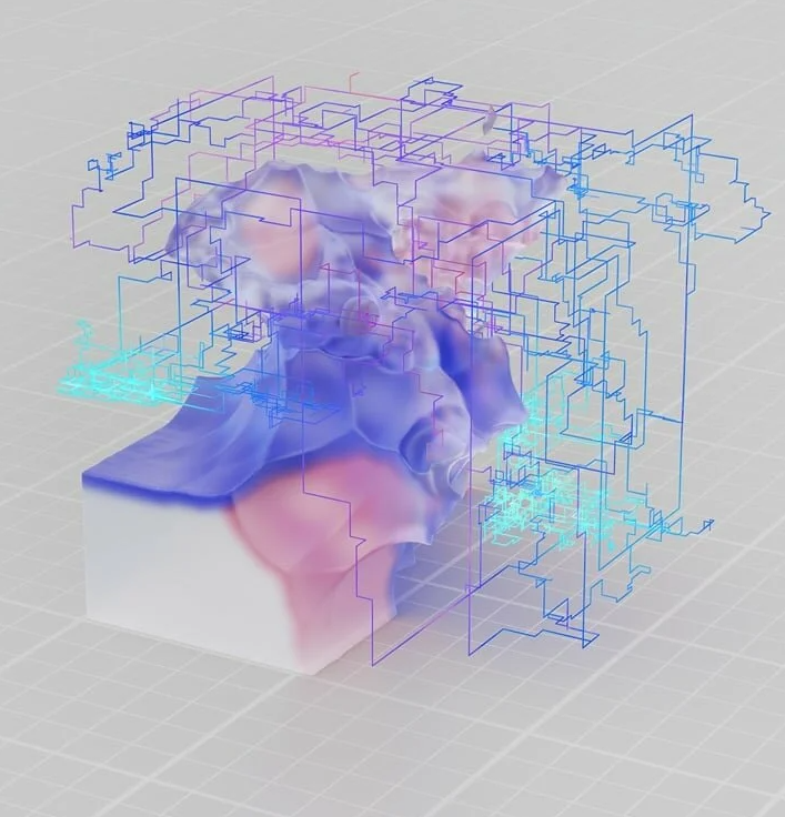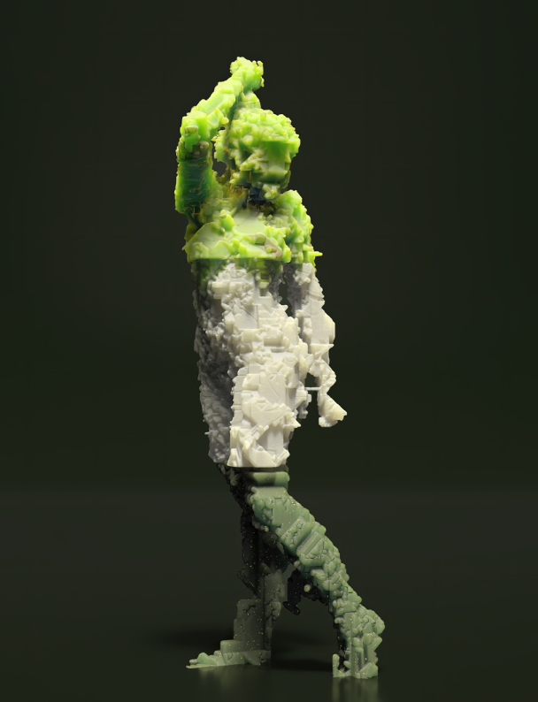 他们的实验在最终的 3D 生成展览环境中呈现为一系列精心策划的数字艺术作品,描绘了一个简单的立方体在每次迭代中转变为越来越容易识别的形状并最终呈现出人形的过程。