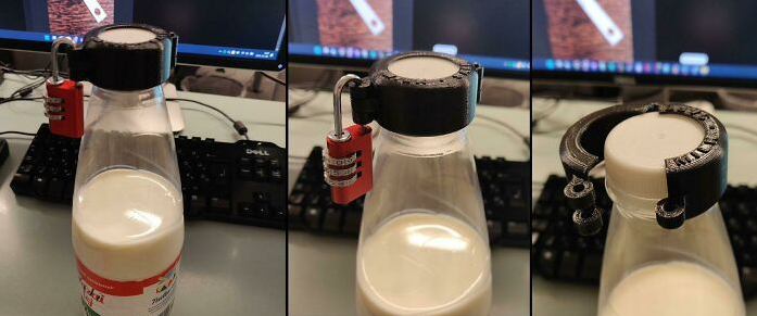 有人一直喝我办公室冰箱里的牛奶,所以我给牛奶瓶锁上了