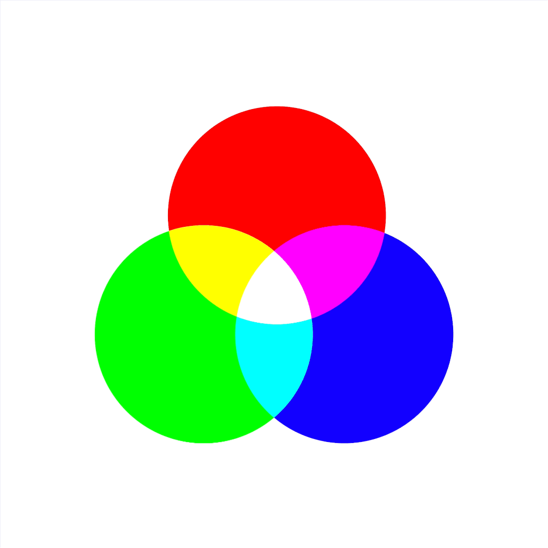 在现代色彩理论中,也称为RGB颜色模型,红色、绿色和蓝色是加法原色。在显示器上红光、绿光和蓝光结合在一起产生白光,这三种颜色在不同的混合物中结合在一起,几乎可以产生任何其他颜色。