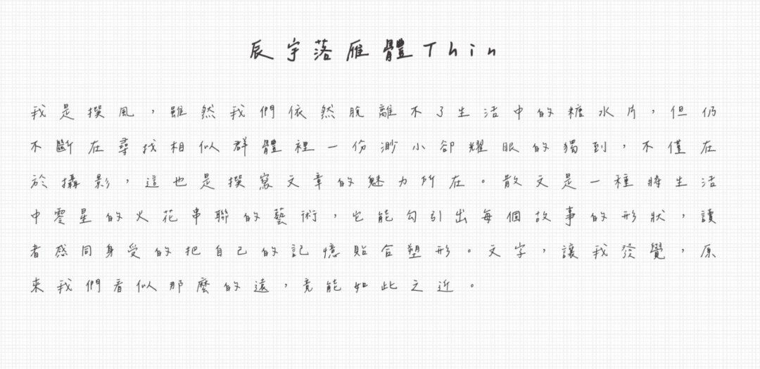 好的,其实今天给大家分享的「辰宇落雁体」,不是真的「沉鱼落雁体」。先别尴尬,先来欣赏这款最新开源字型「辰宇落雁体」的“美色”。