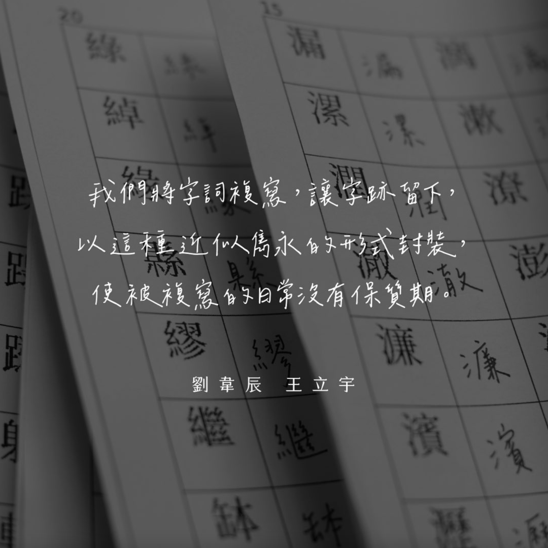 于是,他开始行动起来,通过写字网站结识,开始一起研究字体。但是,研发字体是件很复杂的事情。但不可小看年轻人的学习能力和open mind精神。他们通过线上学习,并找到是并请教和咨询字体设计团队Justfont,受该团队指导,最终输出这款1.0版本的「辰宇落雁体」。