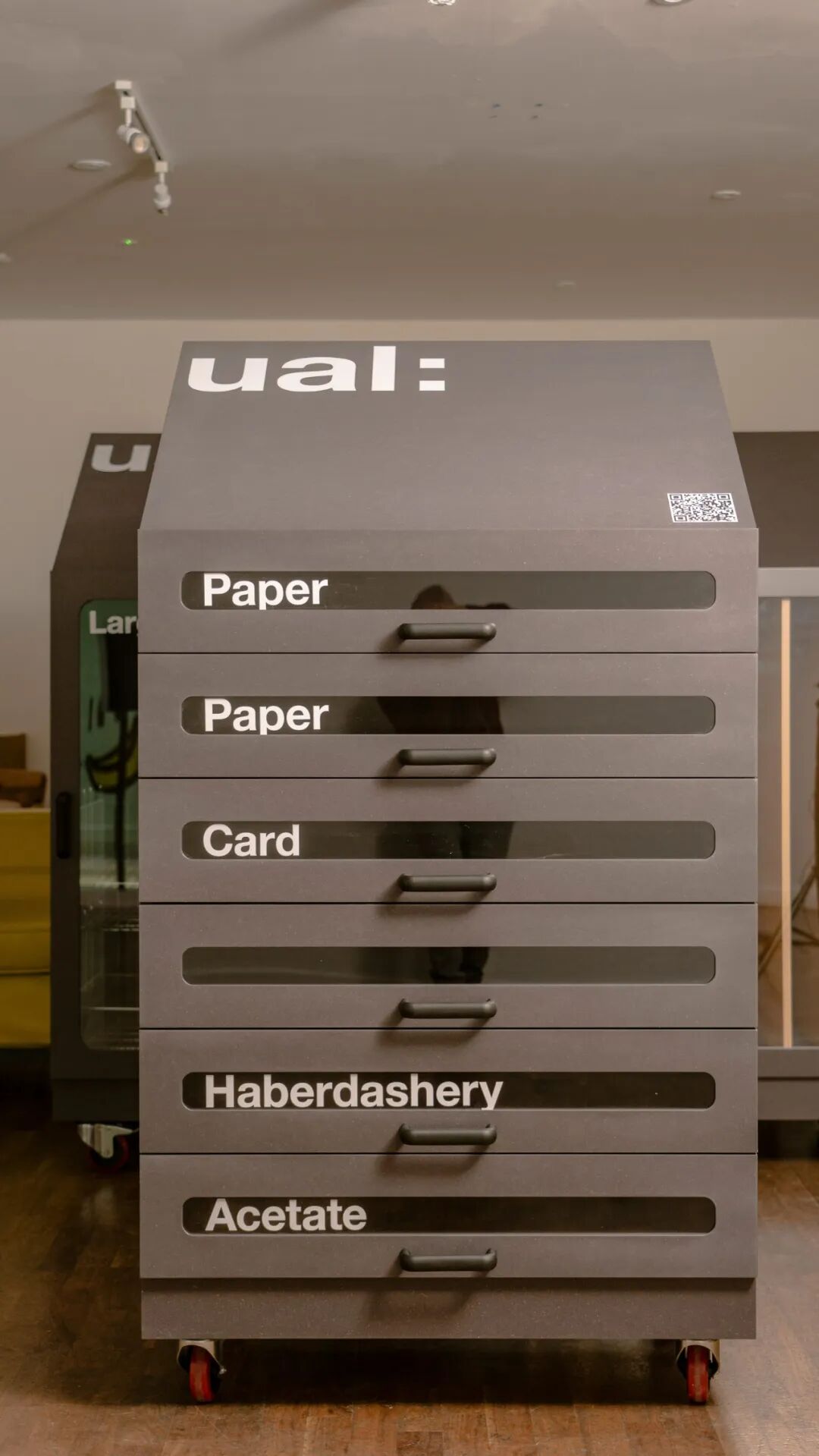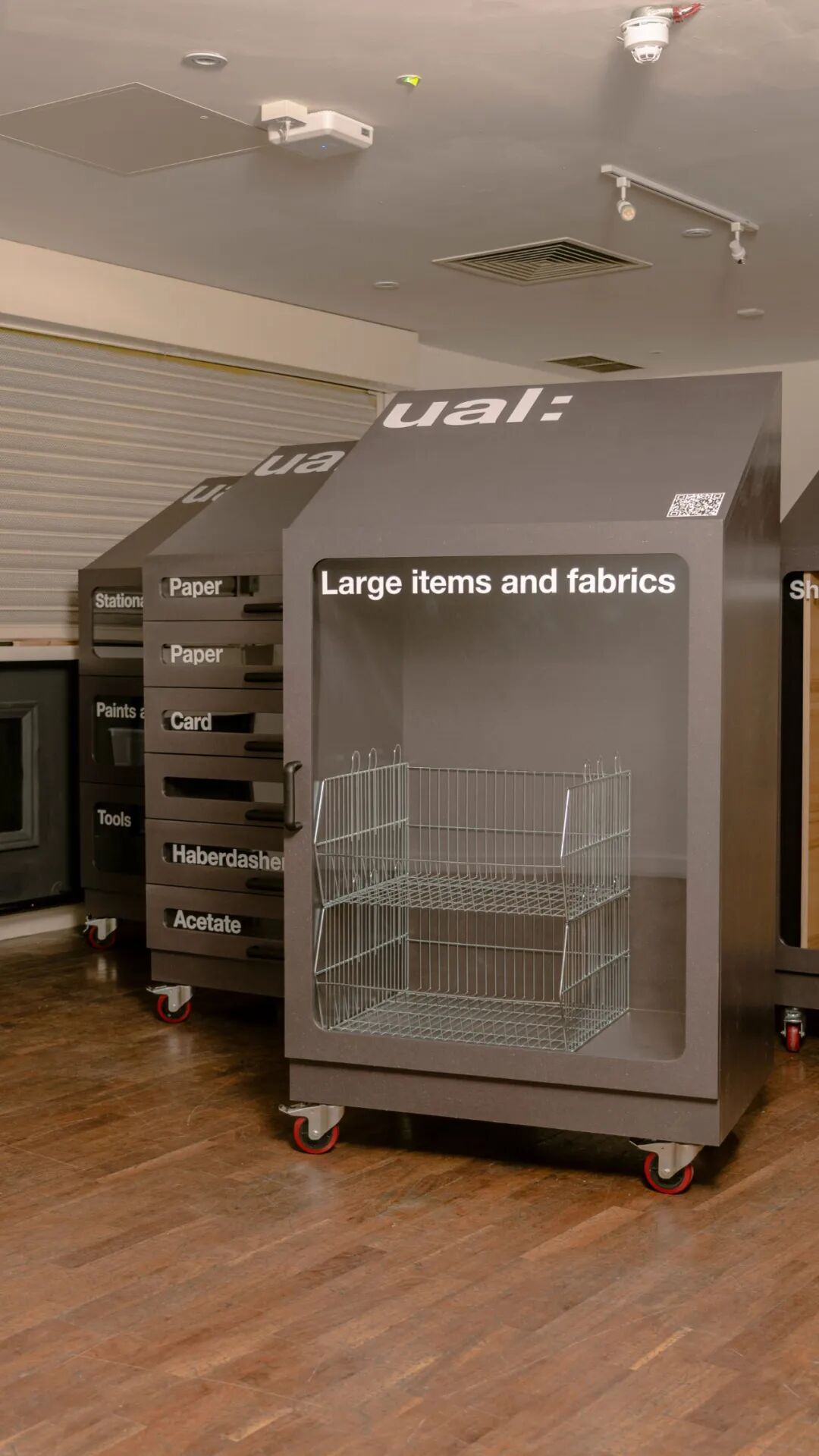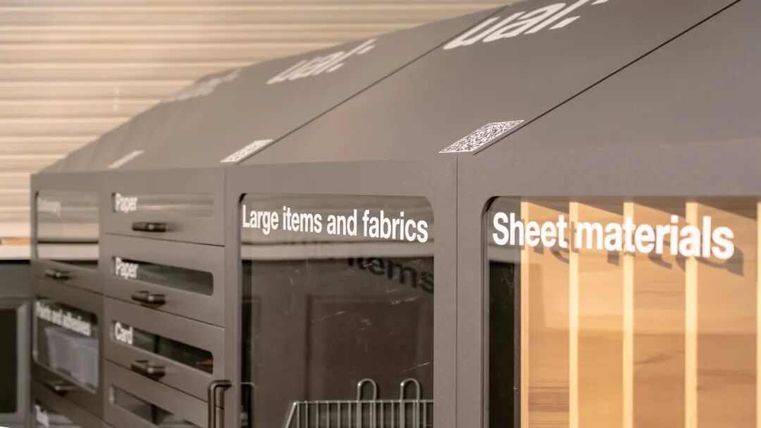 该设计已经在 UAL 的伦敦时装学院、切尔西艺术学院和伦敦传播学院投入使用,学生可以在这里放下他们项目中不需要的废料,以便其他人可以免费重复使用。