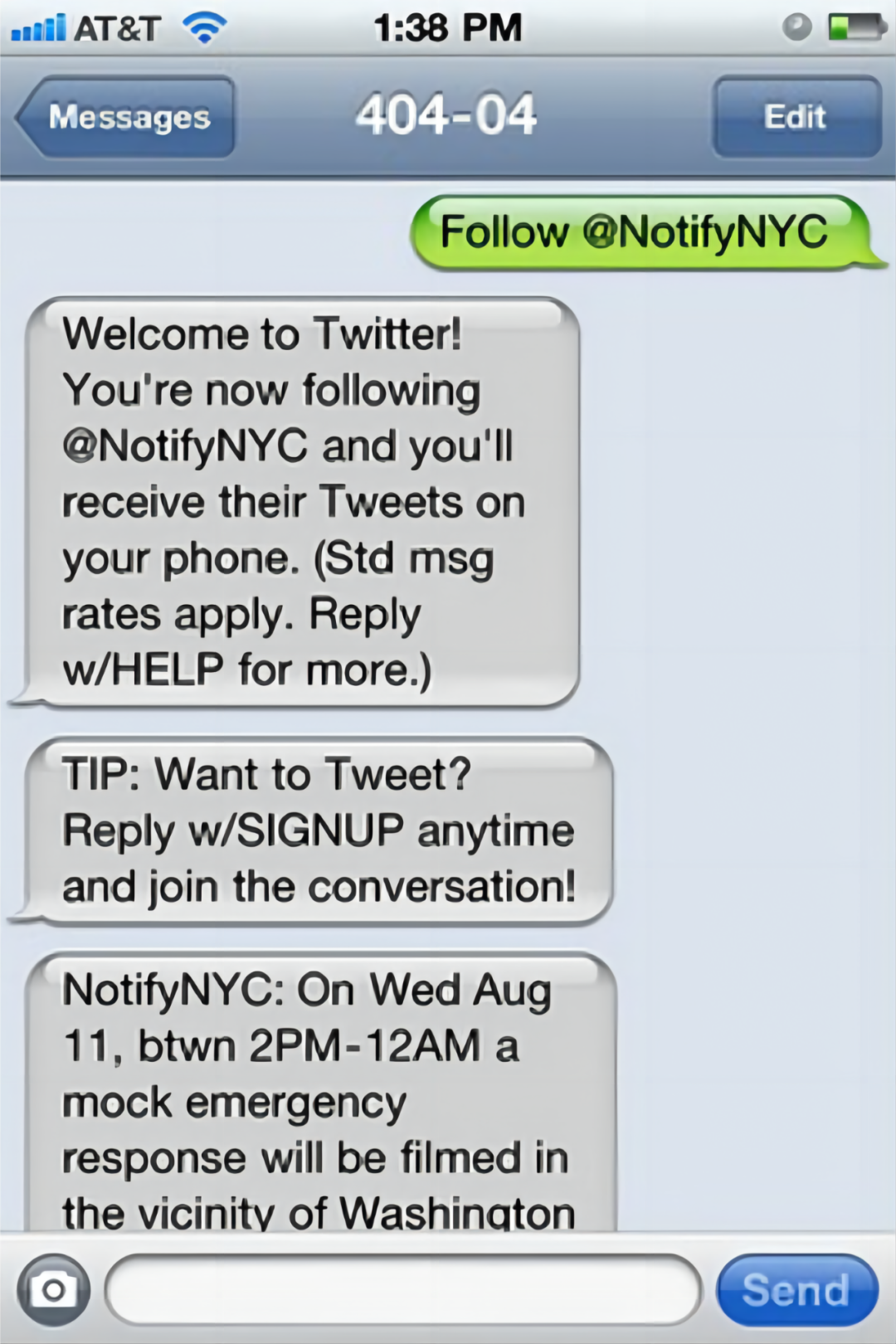 ● 创立早期,通过发短信 40404 获取 Twitter 更新