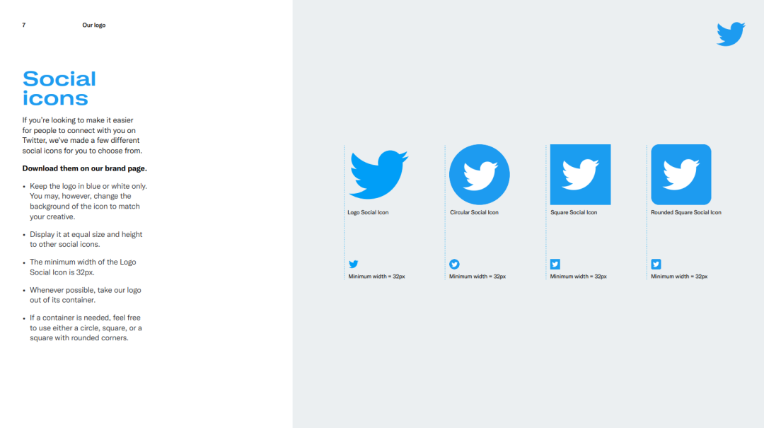 对于第一个官方 Twitter 标志,他们完全改变了调色板,从绿色变为浅蓝色。蓝色是社交媒体领域的一种常见颜色,与信任、冷静和正直有关。