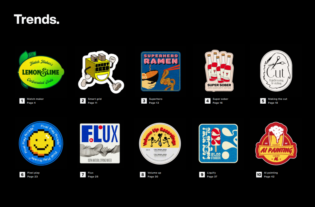 Monotype 创意字体总监 Terrance Weinzierl 在一份新闻稿中说。“Type 是通往围绕技术和当今趋势的整个对话的门户,”这份报告是一本教育性的作品集,令我们着迷和兴奋,最重要的是,它代表了设计海洋中的涟漪。通过这十种趋势,我们提供了日常生活如何影响字体的视角。”