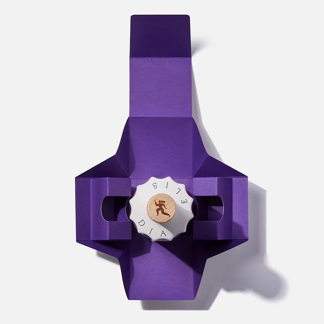 Dia Elis 的白色容器采用手工制作的 300 毫升陶瓷瓶包装,这是刻意模仿经典的希腊圆柱。细长的带凹槽的瓶子与一个方形的盒子一起构成古典的希腊建筑外观,展开后露出细长的脖子和里面的木盖。容器和瓶盖顶部印有一个奥林匹克女运动员的标志。