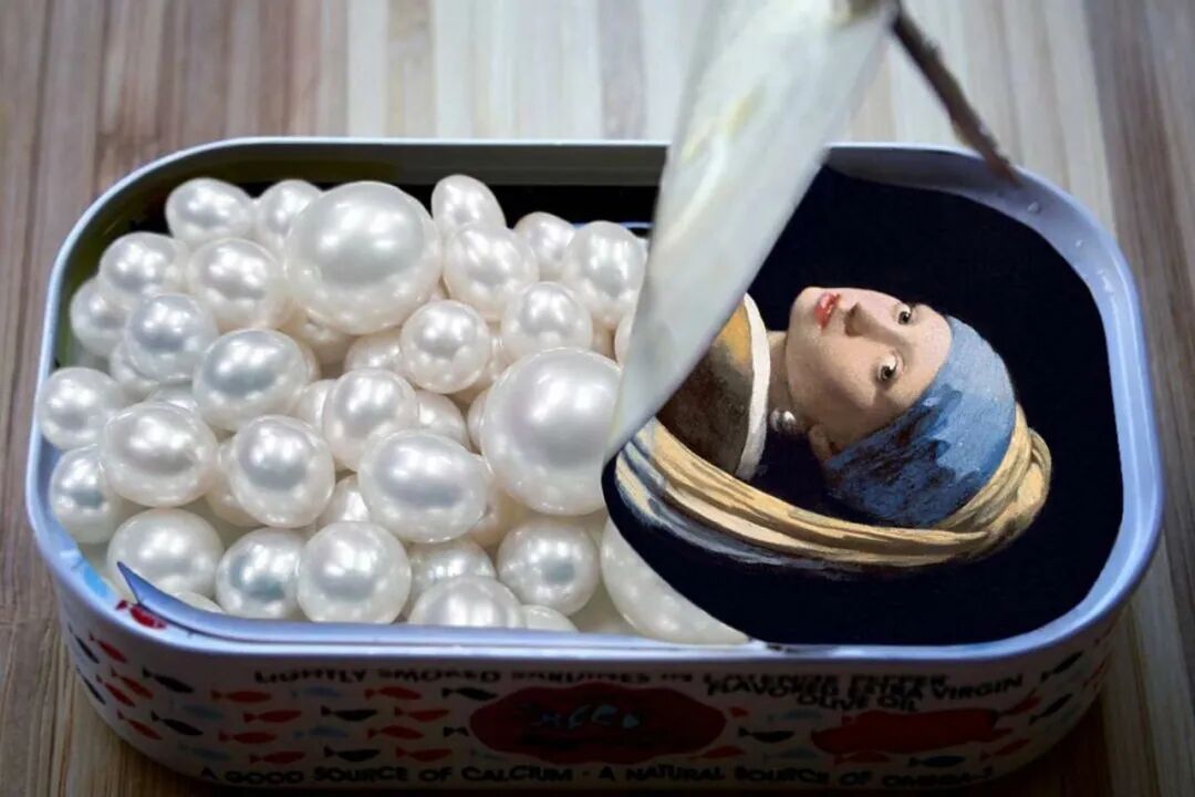 莫瑞泰斯皇家美术会通过精心选轮流放置由公众重新诠释创作的珍珠耳环的少女》。