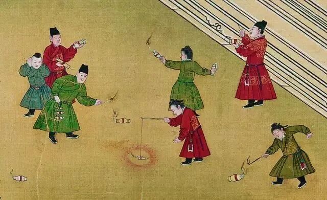 《明宪宗元宵行乐图卷》描绘的放烟花