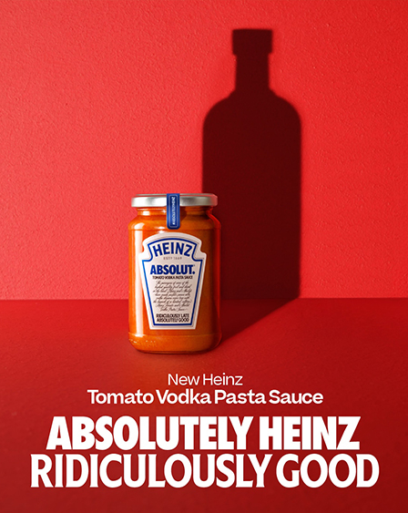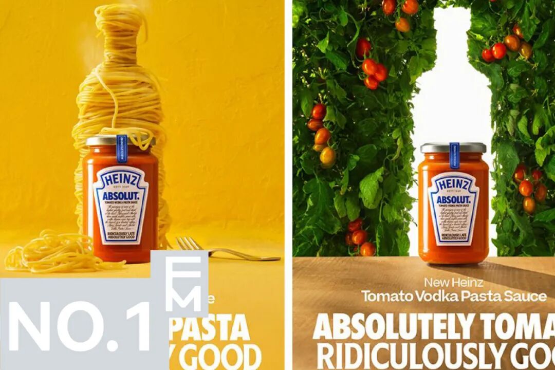 蕃茄酱品牌亨氏 (Heinz) 与伏特加品牌 Absolut 于近日展开合作。这两个品牌都是各自领域中最知名的品牌,多年来,它们宣传上都利用人们很容易识别其徽标和包装设计的优势。
