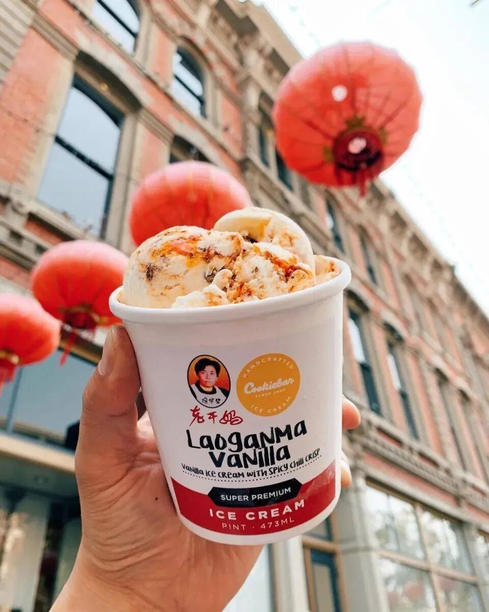 据“考古”资料显示,多年前有一家国外甜品店专门推出一款老干妈香草味儿冰淇淋,以表达对老干妈的热爱之情(至于老干妈品牌是否了解此事,咱也无从得知)。