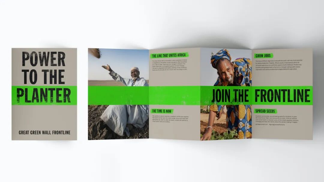 十多年来,THE Great Green Wall一直以代表该项目制度层面的品牌存在,与组织合作筹资和监管。为激发下一代建设THE Great Green Wall运动创造新身份,以及代表横跨撒哈拉以南 11 个国家的运动。一旦完工,THE Great Green Wall将成为地球上最大的生物结构,面积是大堡礁的三倍。