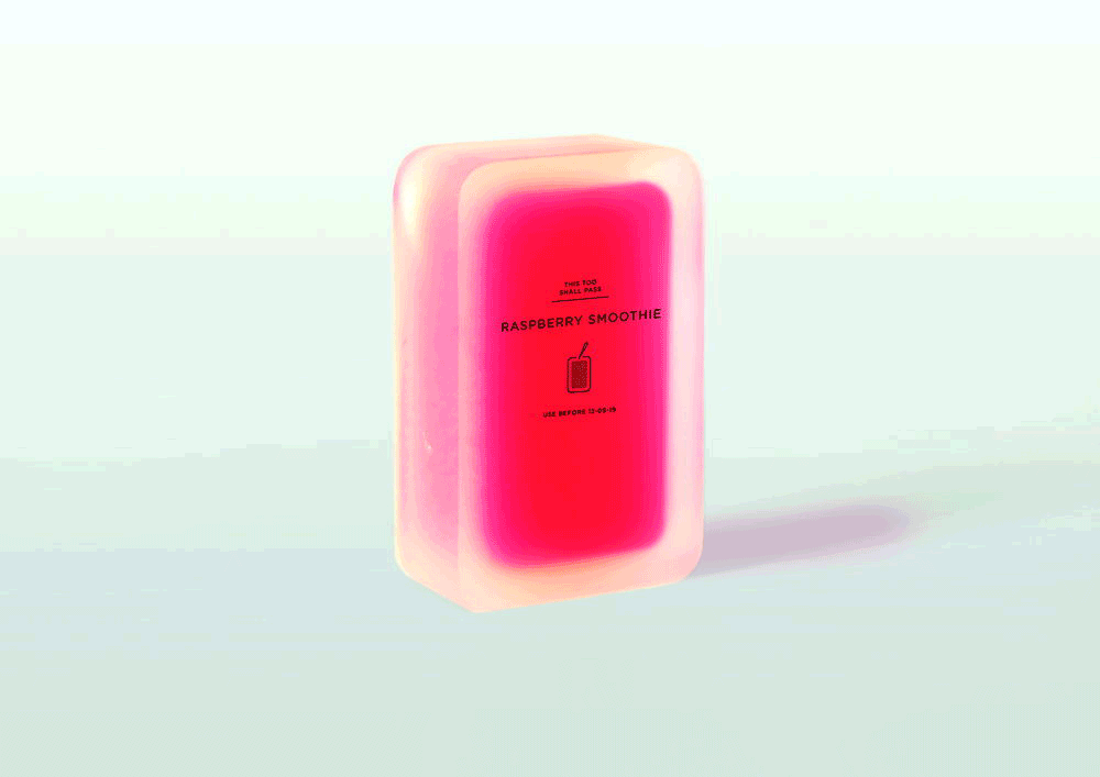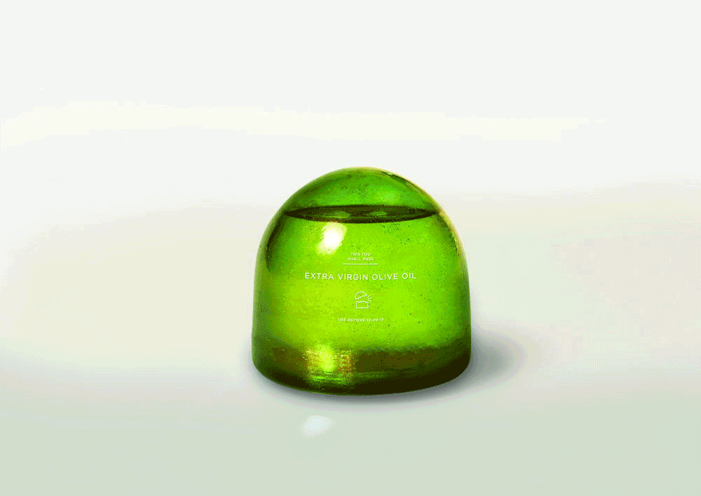 近十年前,Tomorrow Machine创造了一个名为 This Too Shall Pass 的包装系列,这是一种可食用的包装,其材料的使用寿命与其所装食物的使用寿命一样短。不过,最终因为高昂的材料成本和复杂的生产方法,他们只制作了一系列原型,从未真正投入生产。