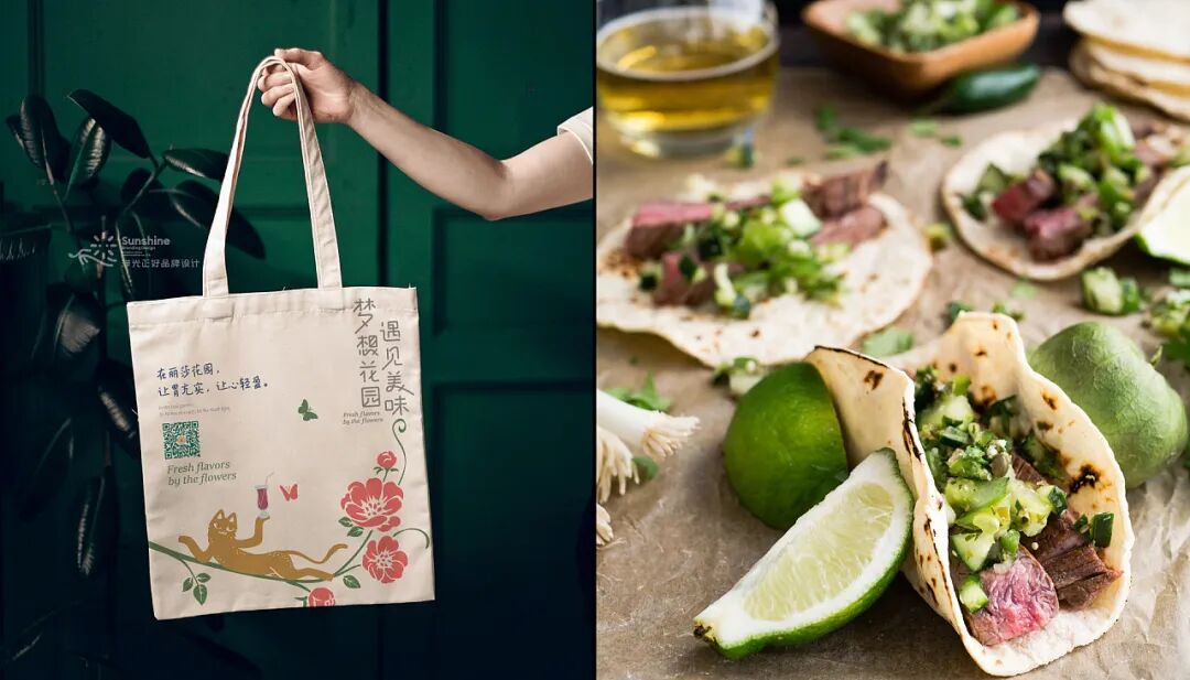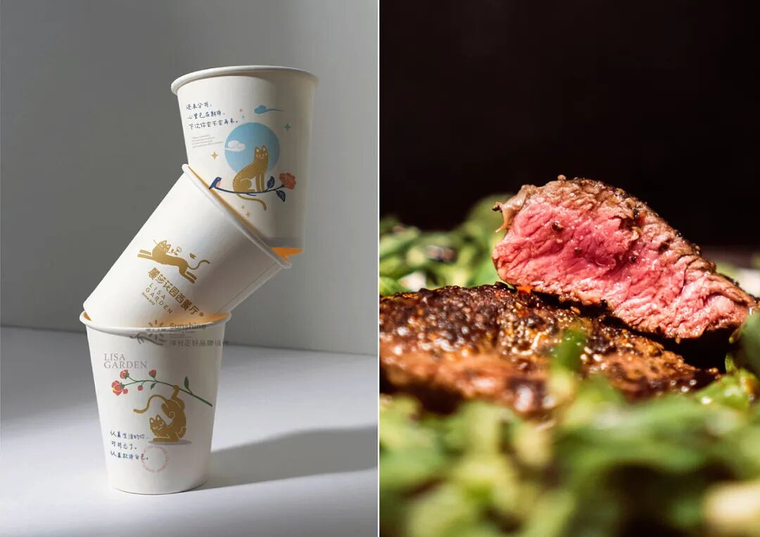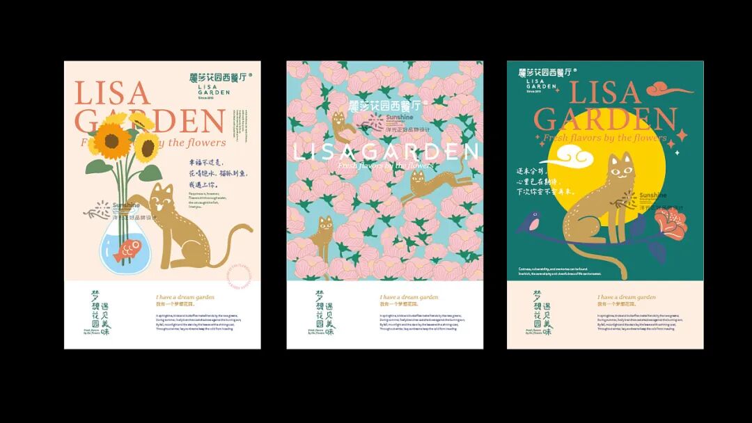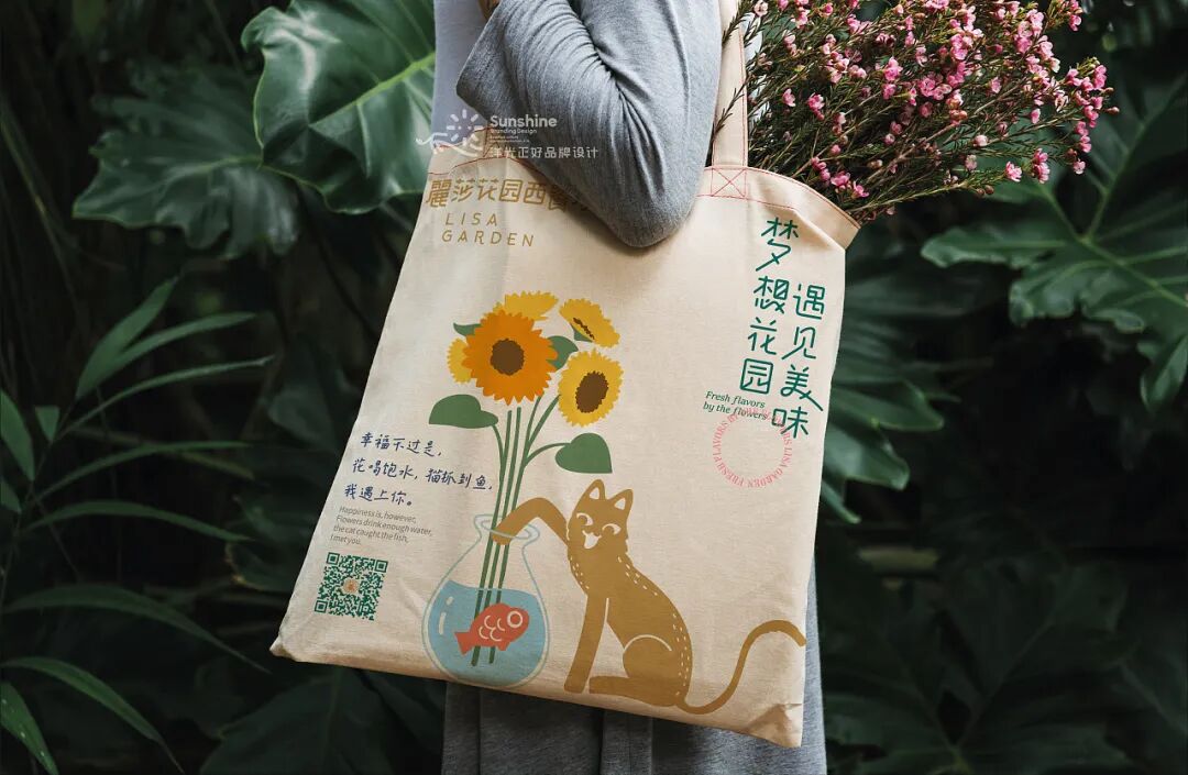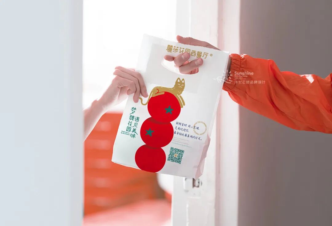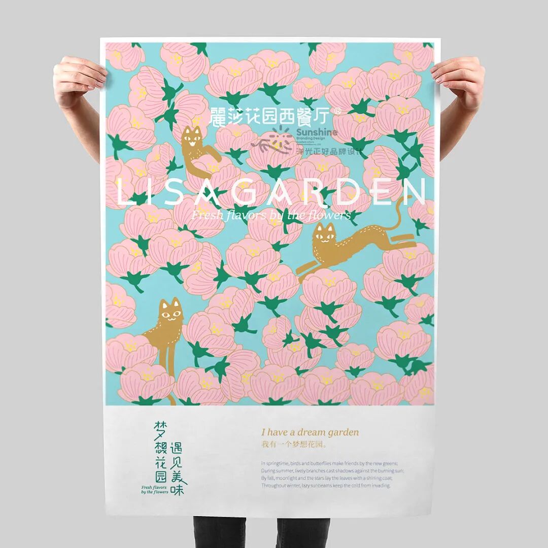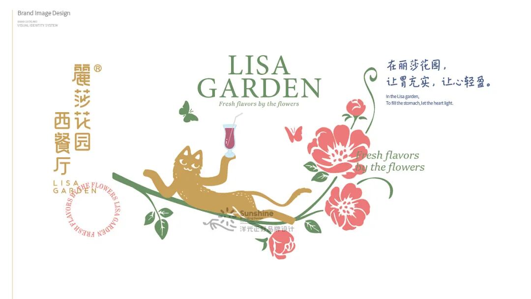 这家餐厅的平面视觉设计,更偏向于主理人的需求。主理人Lisa熱情率真单纯,热爱花草,喜爱小动物,喜好主理美味,她希望通过餐厅,给迎来送往的朋友们带去温暖和美好。Lisa和丈夫童先生崇尚生命平等,一直来.尽力援助身边所需,收养有数只流浪猫,给它们关爱和温暖的家。所以在视觉中充满了花草、动物、纯真,传递出爱和美好的生活方式。