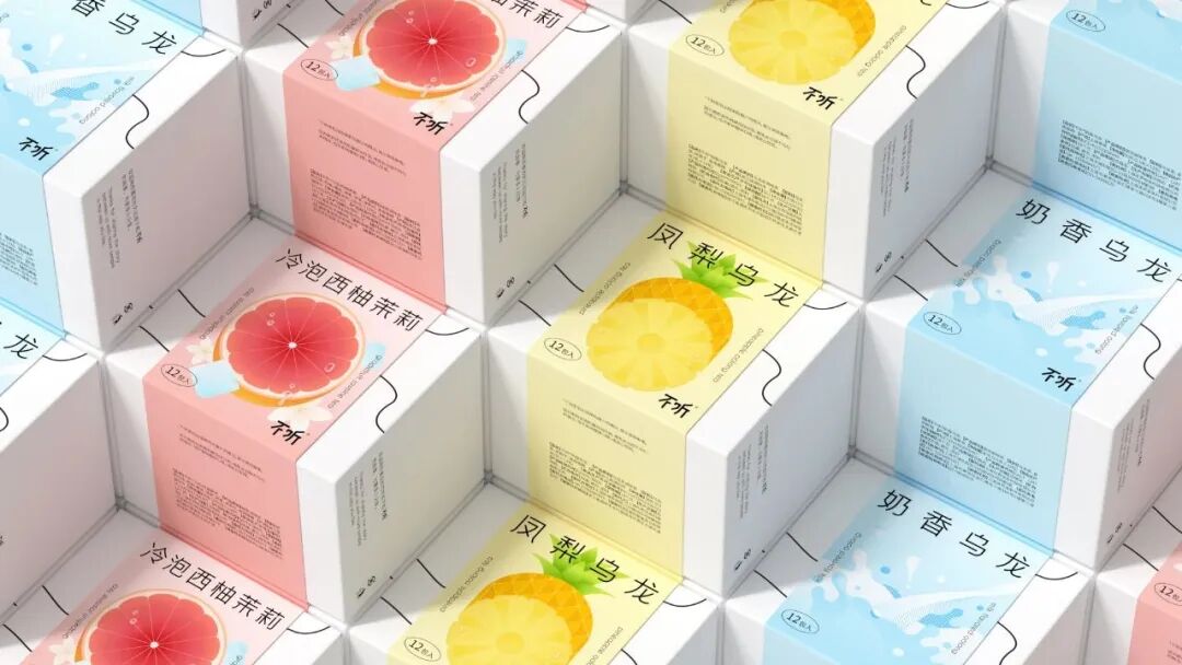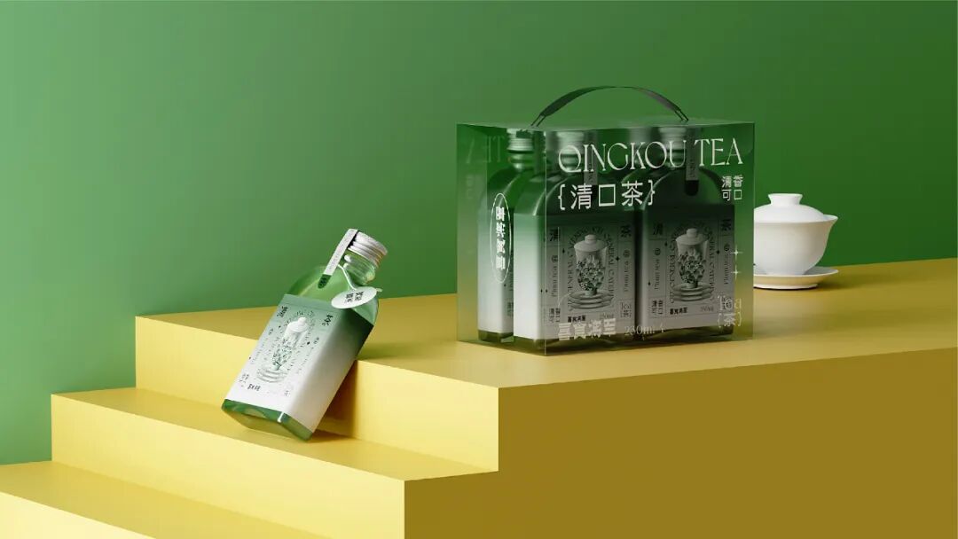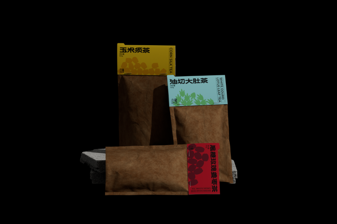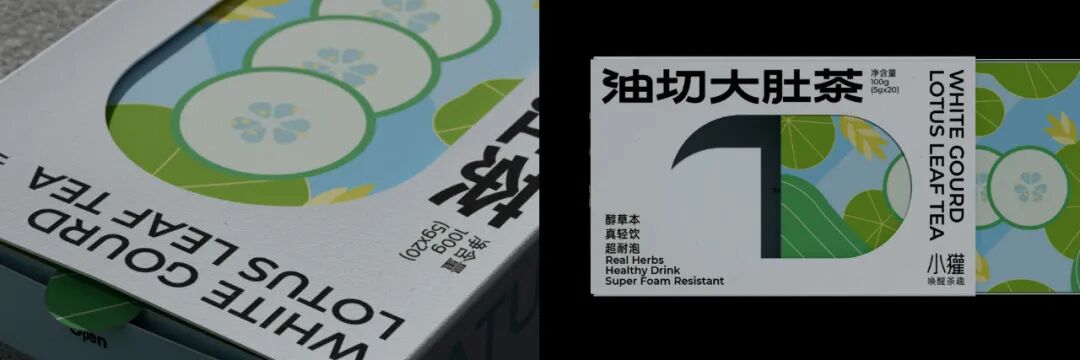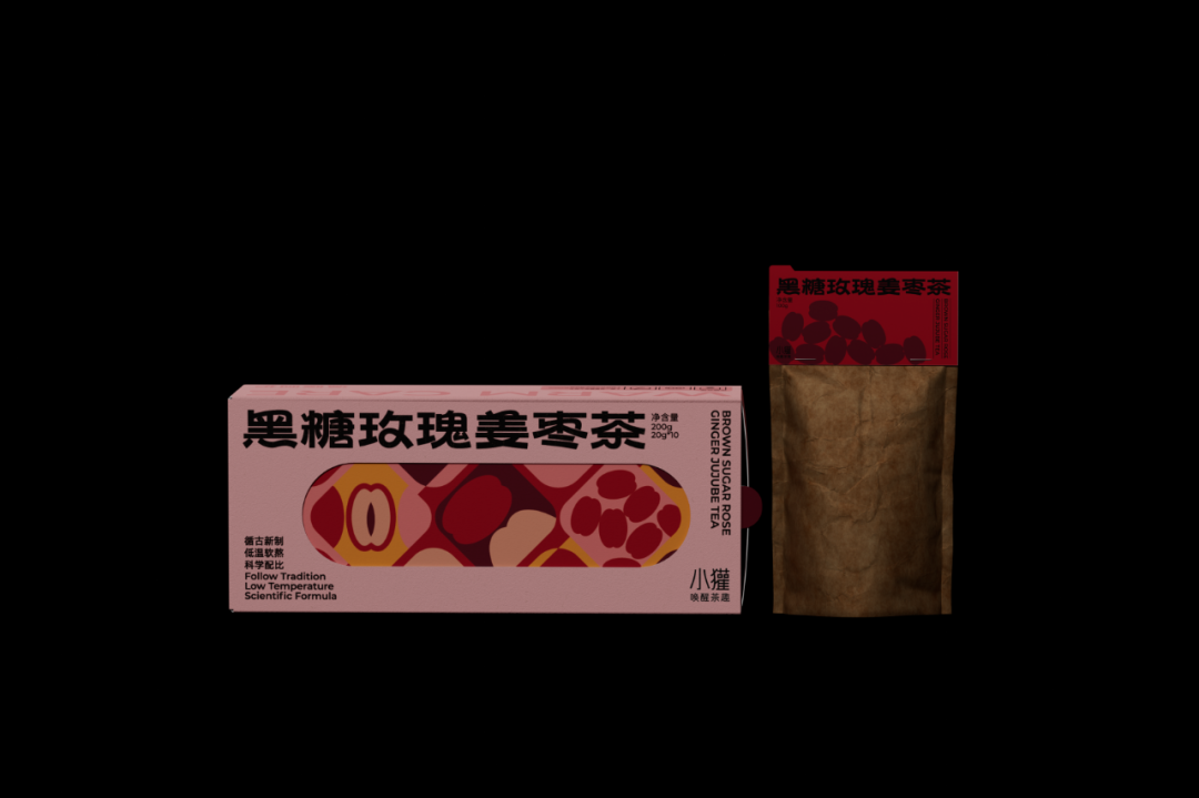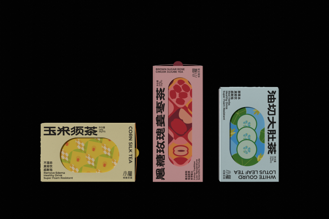 设计灵感来源于中式圆窗与园林中的圆形洞门。在盒型上融入圆窗效果,把包装做成一种可以探见的多重景象,以增加视觉层次感。在包装内部的图形上,将茶饮原材料作为基本的设计单位,以中式花纹中对称、强调中心感的设计方式,延展成了一套图形,用以融合茶饮的「具有功能性」与「使用传统原材料」的卖点。