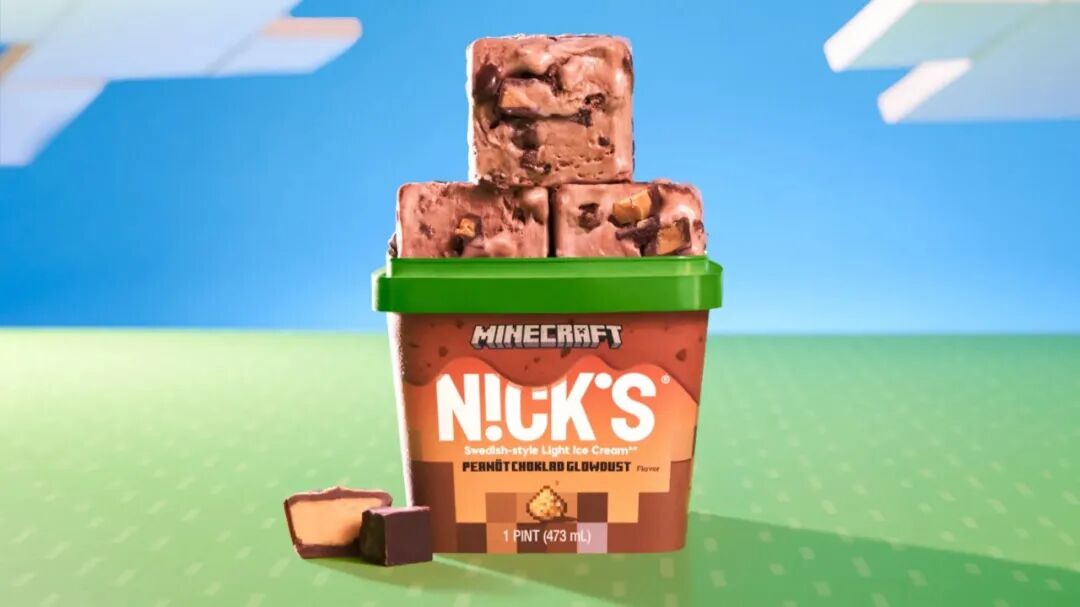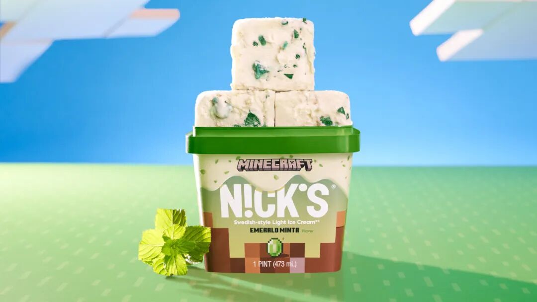 包装不是传统的品脱杯,而是方形的,是对 Minecraft 标志性块状外观的俏皮致敬