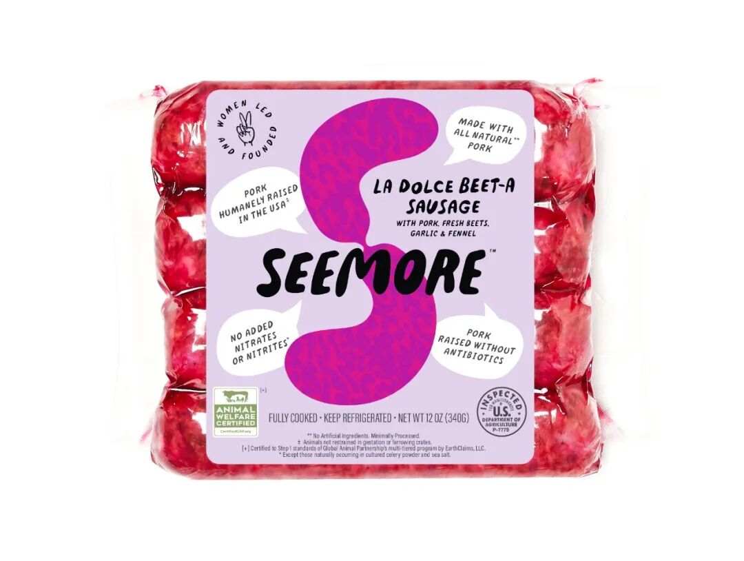 Seemore 色彩缤纷的香肠将人道饲养的肉类与丰盛的新鲜蔬菜(高达 35%!)相结合,有七种独特的口味——西兰花融化、Bubbe 鸡汤、甜蜜甜菜-A、装满的烤土豆、鸡肉帕姆、鸡肉羽衣甘蓝香蒜酱和鸡肉辣椒绿。加入新鲜蔬菜之后不仅提高了色彩的丰富性,同时也使得香肠更健康。