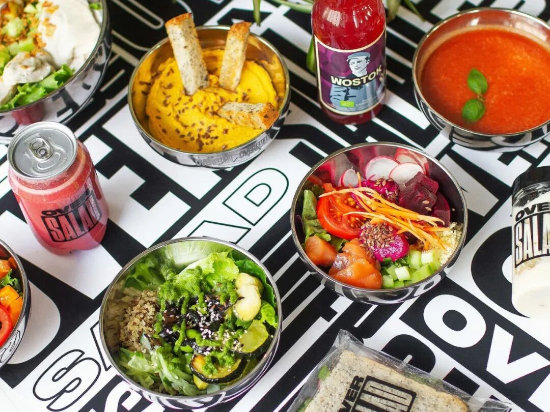 OverSalad是莫斯科的第一家沙拉BAR。顾客可以订购由厨师制作的现成沙拉,也可以自己制作组合,选择各种食材和酱汁。因此,游客购买的是真正“自己”的沙拉——一份拥有他或她想要的一切的食物。为了在视觉上传达这个概念,徽标具有高度可拉伸性,并用它创建了一个图案。图案和徽标尽可能填充格式,以营造满足感和盈余感。