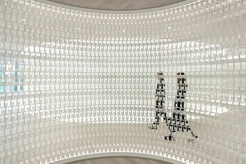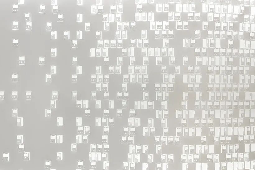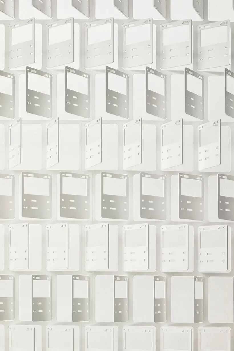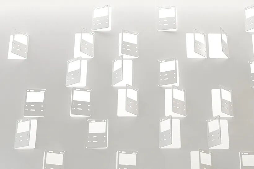 Nendo设计团队利用激光切割机在 2.3 毫米厚的钢板上雕刻了原始尺寸的神奇宝贝卡片。具体怎么操作呢?设计团队解释说: “这些卡片的制造方法是先在一张大纸上印上一系列精心设计的图案,然后将其切成 63 毫米宽 x 88 毫米长的小块。切割成卡片形状后,每件作品都以十二个不同的角度手动弯曲,以控制用户的视野,同时为空间增添质感。”