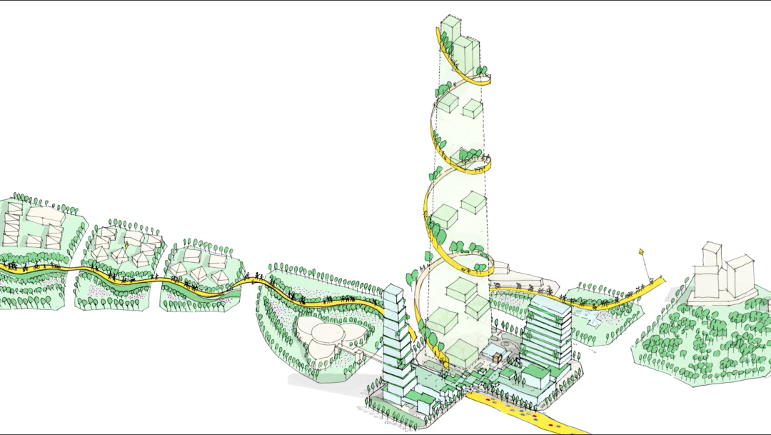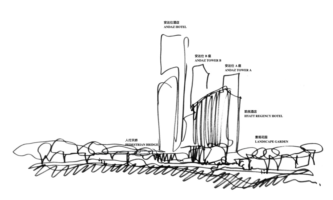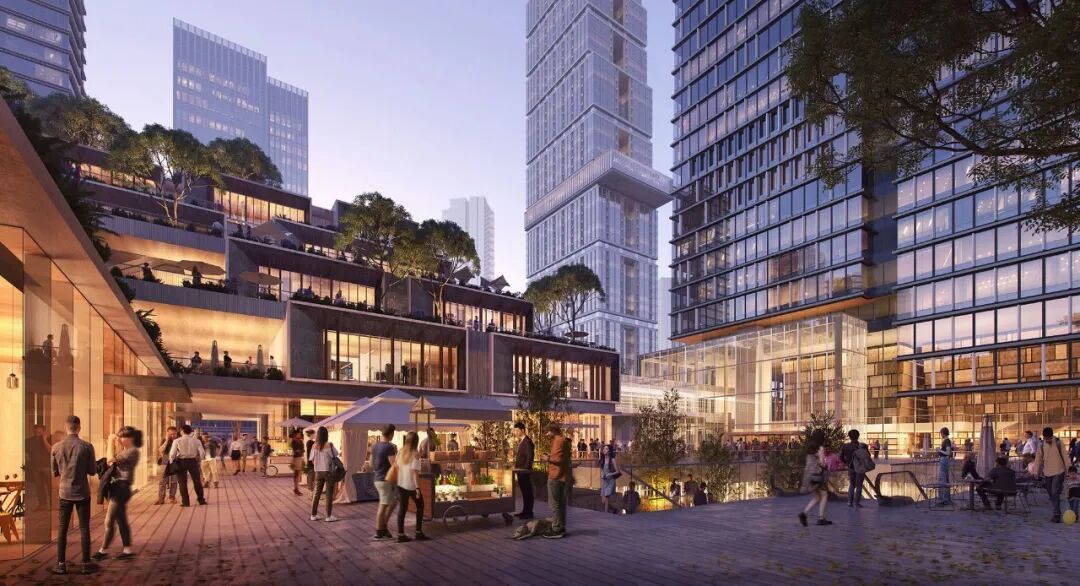 酒店所处的综合体项目的建筑由KPF操刀(KPF也是杭州、北京王府井、香港置地在内很多MO项目的建筑操刀方),成都MO所在项目的建筑以一带一路、亲近社区和绿色自然为创作主旨。底部的商业体极具村落感,众多绿色花园穿插于建筑各处乃至超高塔楼高区。