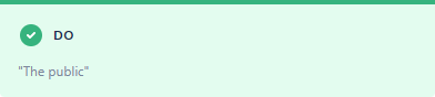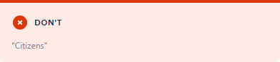 例如不能用 Citizen(市民)而要用 The public(公众),考虑到不是所有人都在城市居住。