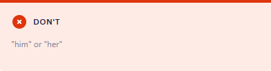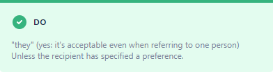 第三人称代词不能用 Her (她)或者 Him(他),而要用无性别指向的 They,哪怕指代的是一个人。