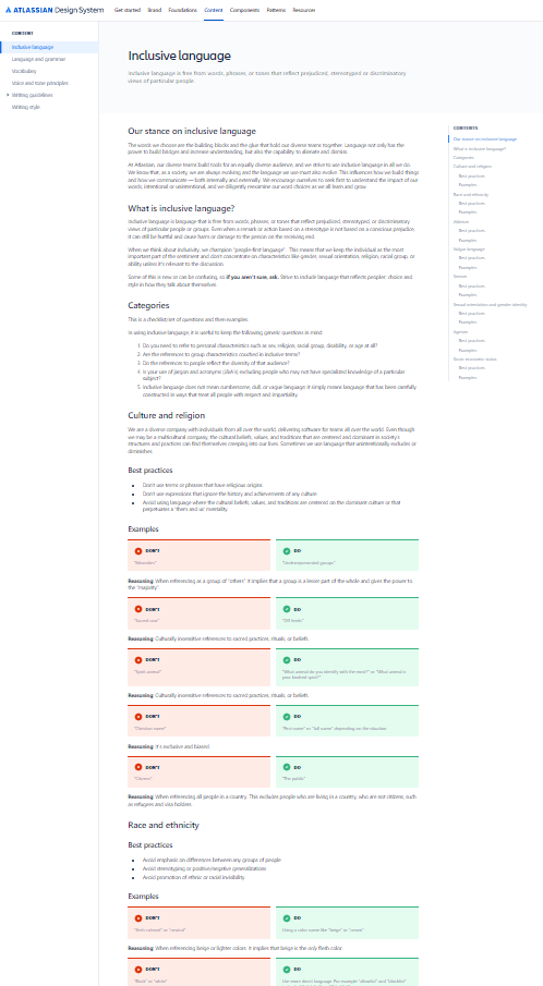 里面明确规避了对文化地区、种族、弱势人群、性别、性别取向、年龄、贫困的歧视和粗俗用语,每种类型都给出了不少案例。