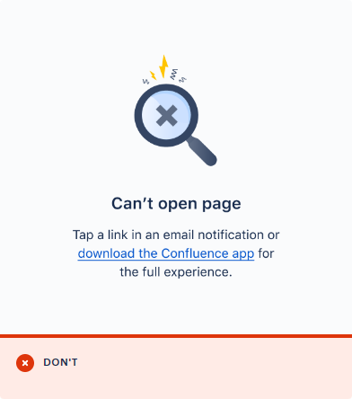 正文要告知原因,下一步可以去哪里,避免重复标题内容,并且保持一到两句话的长度。尽量避免跳转操作,如果必要则可以使用“了解更多”链接。