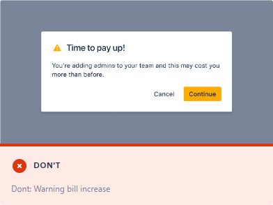 警告要在问题发生之前,而不是之后,例如增加新成员的时候就告知费用可能增加,而不是增加后再说要加钱: