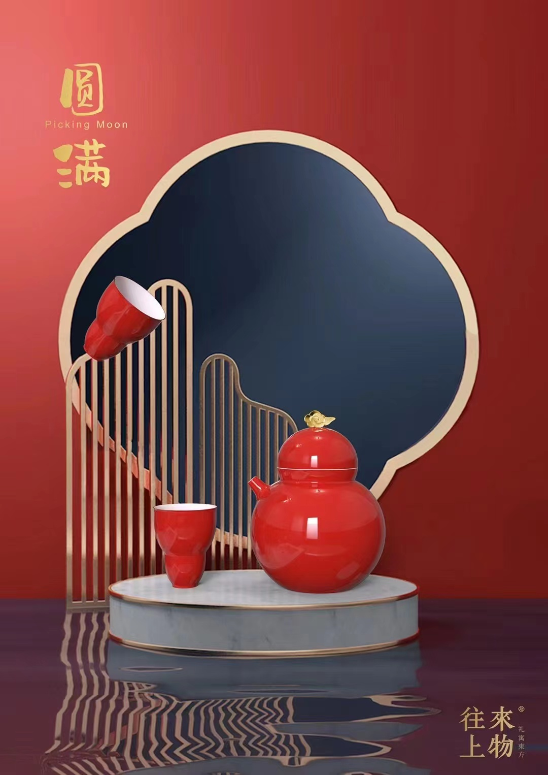 往来上物选择以东方美学和文化作为品牌的核心基调,定位陶瓷礼品,景德镇这方土地给了我们精湛制瓷工艺的加持。用祥瑞文化和东方色彩等关注点为设计表现,又符合消费者对于礼品的商品认知。所以在此基础下“往来上物”是希望通过文化符号传达人情往来之间的礼节,帮助用户转述人情往来的中那些晦涩的部分,表达东方礼节的文化美。