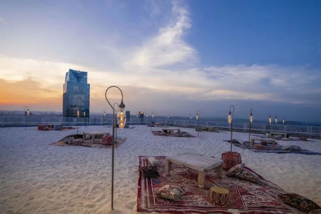 重庆解放碑威斯汀顶楼停机坪高达245米。无论想看落日、看繁星还是看鳞次栉比的“重庆森林”,Urban BEACH都是三五好友周末小聚的不错选择。再加上,酒店今夏限定开放颇具中东风情的都市沙滩派对,踩着细软海沙、吃一盘辣卤、饮一杯冰啤、赏一段歌舞,真的星辰大海也不及都市沙滩更让人回味。