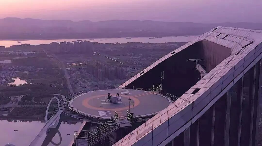 温州威斯汀酒店停机坪位于高耸入云的255米主楼楼顶,将温州全城一览无余。