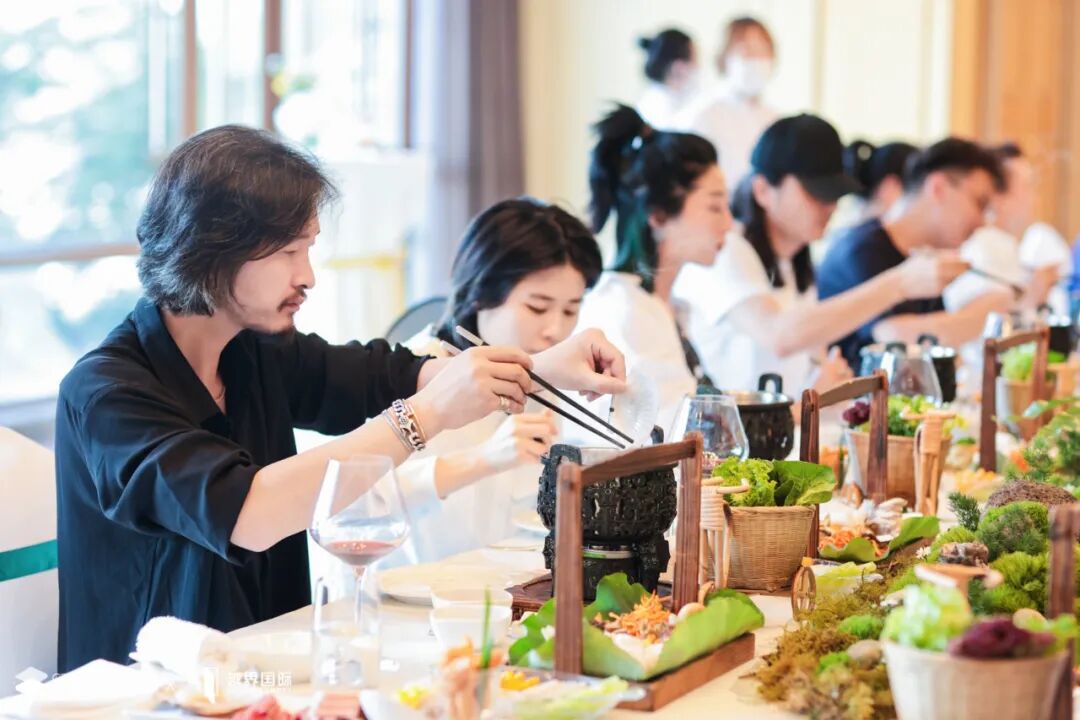 长席铺开,在杯光灯影中,在觥筹交错时,土锅菌子火锅,大家直呼“吃出了庄园盛宴的感觉”。仪式感放大了对美的敏锐体验,是在稀松平常与司空见惯中,多了一份对生活、对万物的珍重体切。