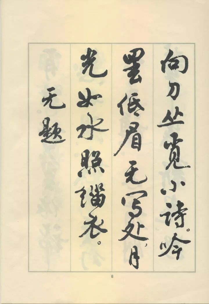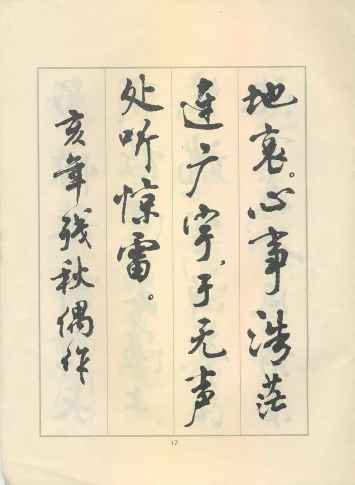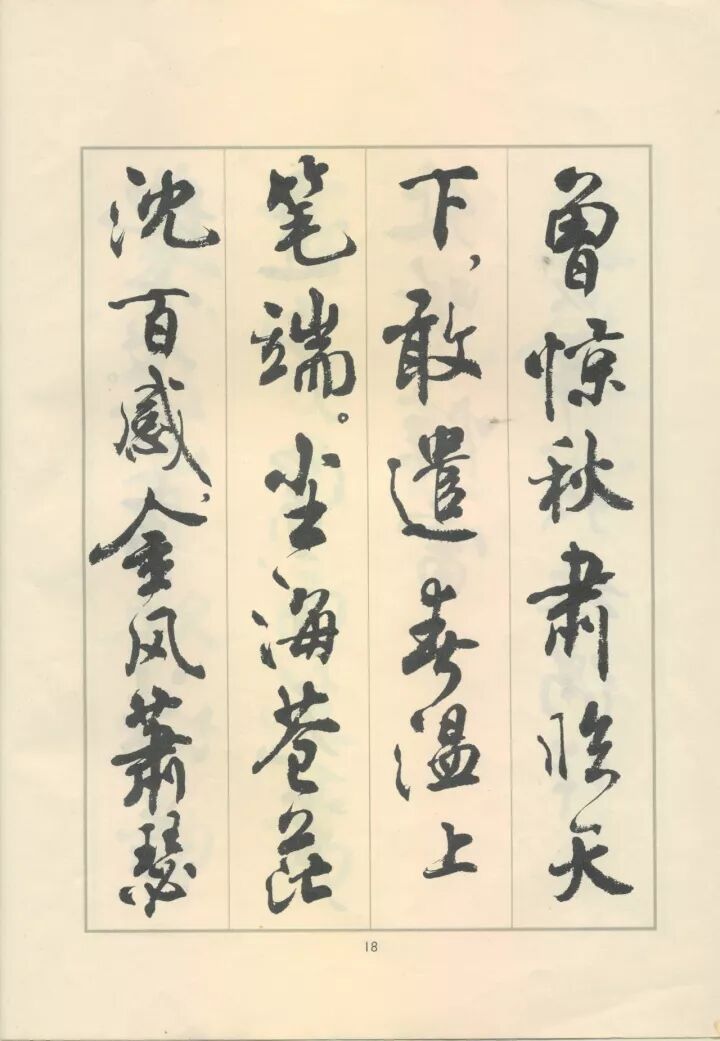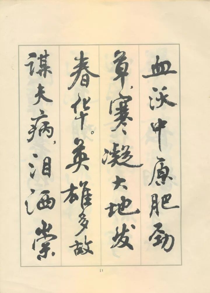 《行书字帖—鲁迅诗歌选》通帖笔势雄强,既有米字的潇散奔放,笔致俊迈,又有颜体的气势开阔,宽博厚重。此帖笔法雅正,笔意健拔洒脱,尤其能与当时的学书人产生精神共鸣,在全国范围内迅速走红。连印十多版,创下一百多万册的销售纪录。