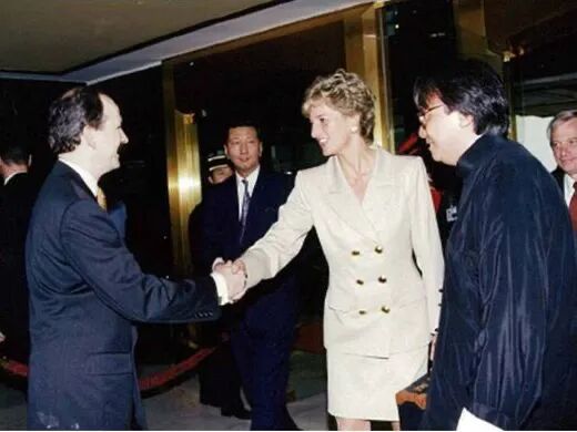 我还很难忘戴安娜王妃当年到访中国香港时的一些照片,其中一张不仅有邓永锵陪伴在侧,戴妃臂弯里还抱着一个装着华服的红色镶边上海滩Shanghai Tang衣袋。