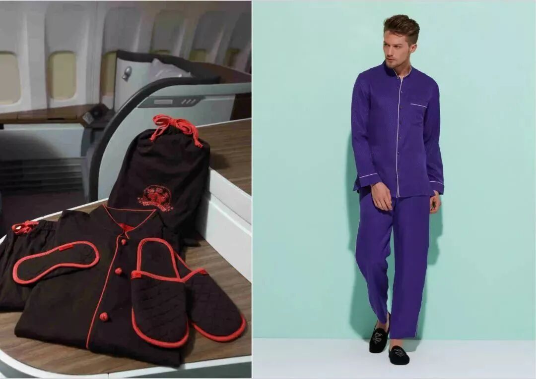 国泰航空也一度在头等舱乘客登机时,由乘务人员双手捧出并递上由上海滩Shanghai Tang出品的睡衣+眼罩+拖鞋套装,亮色镶边、中式立领和盘扣,在三万英尺高空刮起一阵时尚旋风,让横跨大洋的机舱为革新演绎的中式时尚美学愉悦和点亮。
