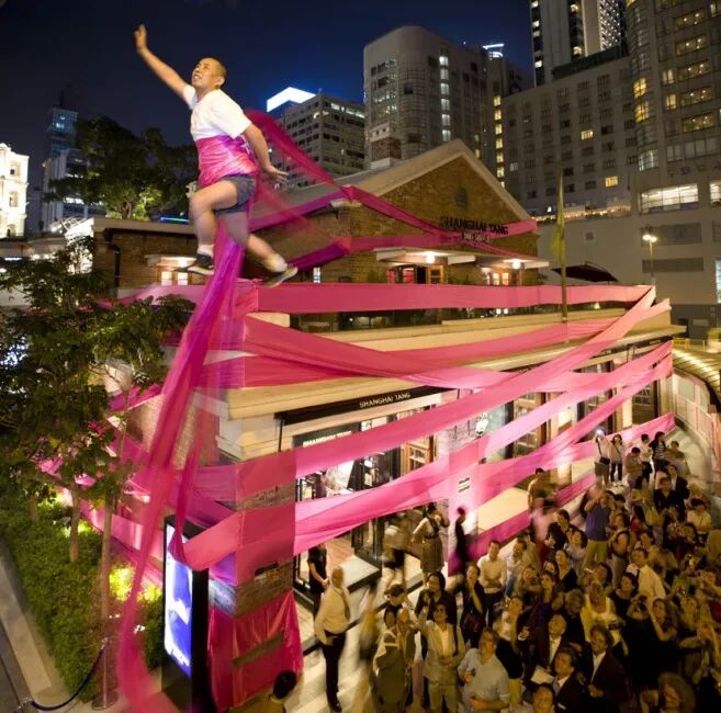 在上海滩Shanghai Tang 2009年春夏系列“颠覆”中,所运用的抽象印花的灵感即源于中国当代艺术家朱铭和蔡国强。