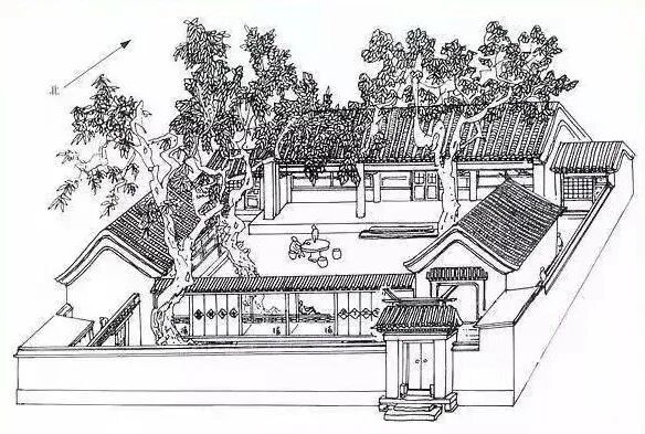 现今北京胡同里的形制也有差异,有些并不规整。在城市建筑中很多事物如果没有十分强烈的礼仪要求,渐渐会根据实际情况做出调整,这就好似生活一般,但调整也会十分讲究,体现出人们乐观积极的生活态度。让我们欣赏一下郑希成老先生根据老北京四合院的实际情况做出的手绘图,感受其中的智慧。